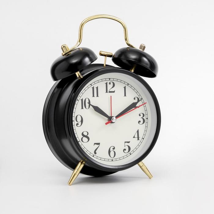 Будильник «Пеннант», с подсветкой, d=9 см, 17×11.5 см, от батарейки АА, чёрный